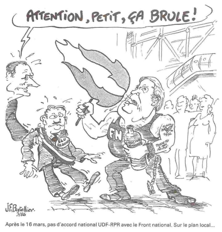 Dessin de mars 1986 ( on reconnaitra le parvis de Beaubourg où j’ai exposé de 1977 à 83 ) Elections législatives gagnées par Chirac/ Paru dans le « Matin de Paris », dont j’étais le seul dessinateur de service ;